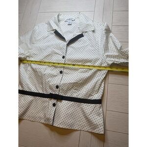Judith Hart Collection Vintage Blk White Polka Dot Button Down Blouse W/ Bow 10