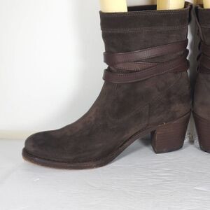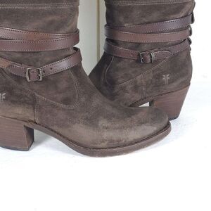 Frye Women's Jane US 8,5B B Strappy Belted Oiled Suede Short Boot Ankle Bootie.