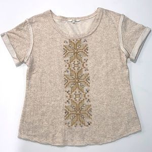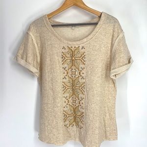 EUC Miss Me Embroidered and Beaded Scoop Neck T-Shirt
