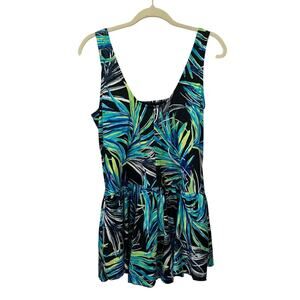 Azul Tankini Swimsuit Womens 24W Tropical Floral Green Blue Black Pool Beach