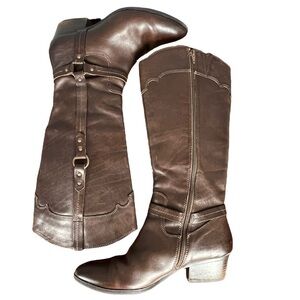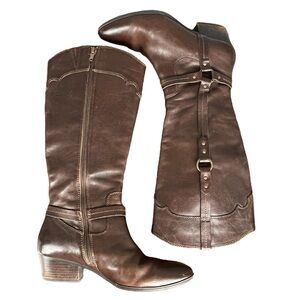 Söfft Brown Leather Tall Riding Boots Sz 9.5W – Side Buckle Detail Western Style