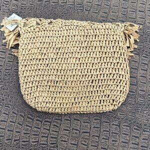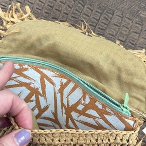THINK INK Tan Woven Fringe Clutch Bag Eco Friendly Recycled Paper Boho Pouch