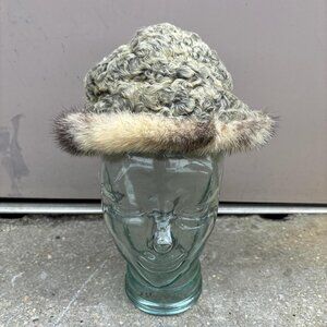 Vintage Adolfo Fur Hat Womens S Curly Lambs Wool Fur Trim Designer New York