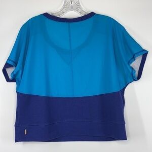Lucy Blue Scoop-neck Mesh Back Athleisure Short Sleeve Shirt