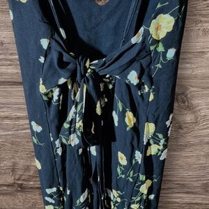 Reformation Dietrich Midi Black Dress with Piazza Floral Print & Tie Back Detail