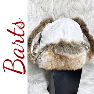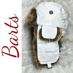 NWOT BARTS TRAPPER AVIATOR PILOT BOMBER HAT FAUX FUR TRIM WHITE, ONE SIZE