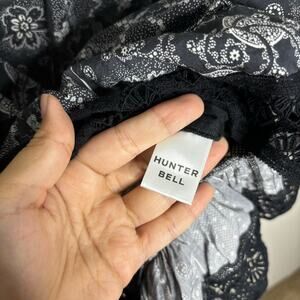 Hunter Bell NYC Black Gray Floral Stripe Eliza Ruffle Lace Top Sz 0