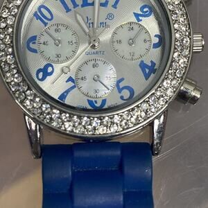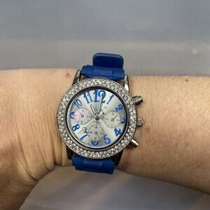Vivani Rhinestone Embellished Blue Silicone Band Quartz Watch.. Condition is "Pre-owned". Shipped with USPS First Class.