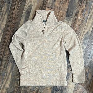 This stylish tan sweater is perfect for keeping your child cozy and fashionable. Ideal for any outing.