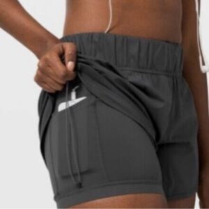 Lululemon Strides Ahead High-Rise Short 4". Graphite Grey. Fabric is four-way stretch, sweat-wicking, and quick-dry. four-way stretch. Inseam : 3.5" liner inseam; 4" shell inseam. Designed for : Run.