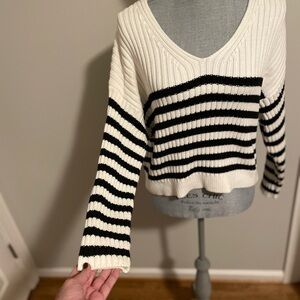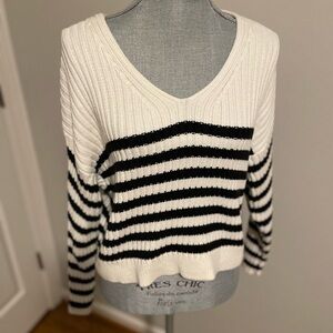 Abercrombie & Fitch V-Neck Sweater - White and Black Stripes