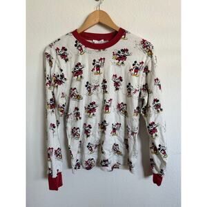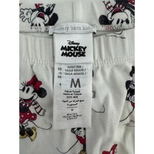 Super soft and comfortable adult medium Christmas pajamas with Mickey and Minnie sledding. Cream white background with red trim. Like new condition and very comfy.