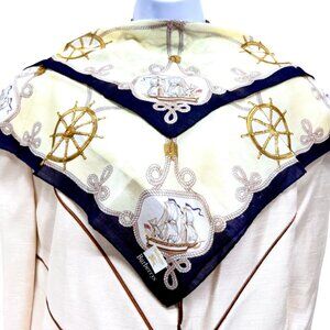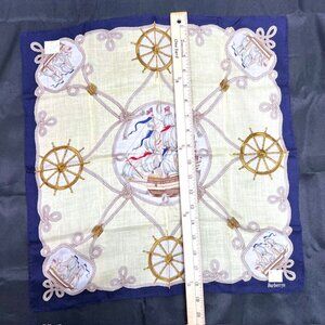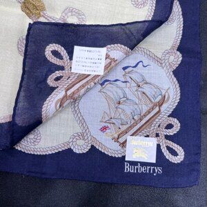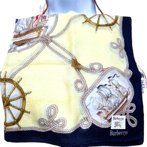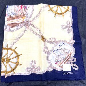 #80) New Burberry women Miniscarf/handkerchief 19x19", cotton made, color light yellow black dark blue brown robe with ship, made in Japan.