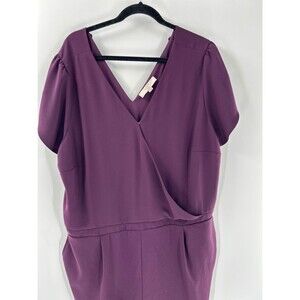 Women's Loft Plus Purple Petal Flutter Sleeve Tie Back Jumpsuit Size 20