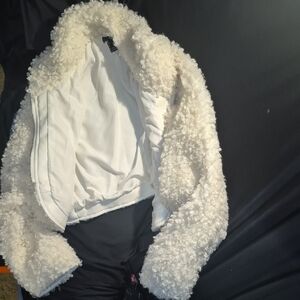 Stay cozy and stylish with this women's cream fleece jacket. Perfect for chilly days, this jacket offers warmth and comfort.