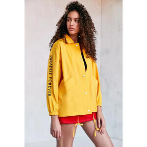 Urban Outfitter BDG Ott Street Palm Tree Coach Jacket Yellow Paradise Forever S
