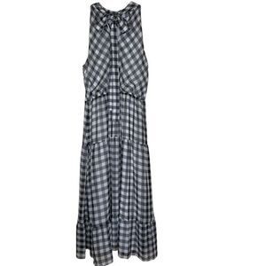 Sam Edelman Black and White Checked High Neck Halter Tiered Midi Dress Sz 14