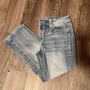 Miss Me Blue Cropped Jeans with Vintage Distress