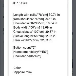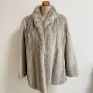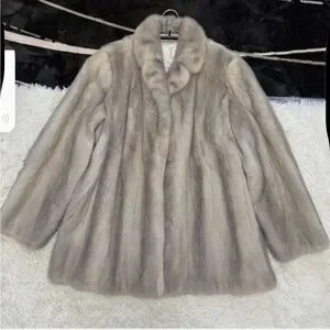 Stunning vintage saga, sapphire, mink fur coat. Hook closures on front in excellent Preloved condition. There are a couple stains on the inside lining as shown in photos. Please see all photos for details. The size is JP 15 but it is going to better fit a size 10-12 US.