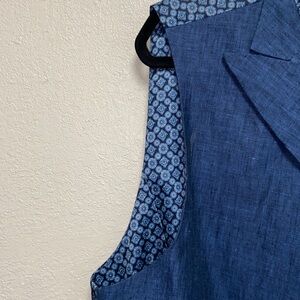 Paul Frederick Men's Blue 100% linen double breasted notch, lapel Vest 3633