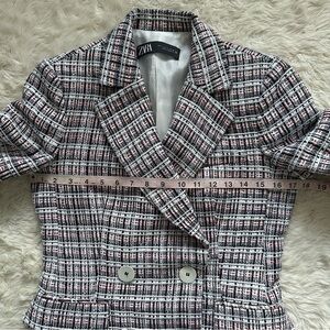 Zara Jacket Double Breasted Blazer Tweed Textured Long Sleeve Multicolor S