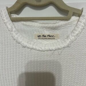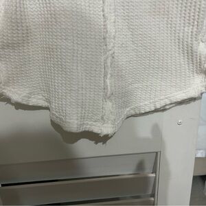 Chic white top with waffle knit texture. Ideal for everyday style. Sleeves with thumb holes.