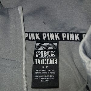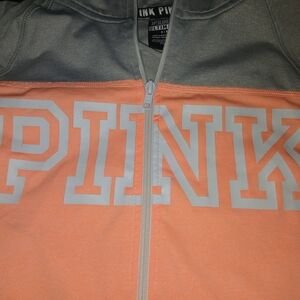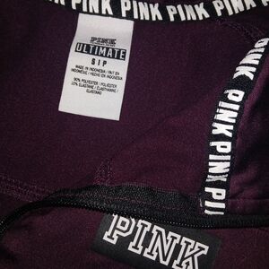 Stylish and comfortable, these PINK Victoria's Secret half-zip sweatshirts are perfect for any casual outing. Available in peach and purple, they offer a trendy look with the iconic PINK Victoria's Secret branding. Reflective detailing and thumb holes. Its also slightly oversized and longer length--peach one. Also, the letter "P" has 2 hairline cracks. There is a tiny mark on the INSIDE of the collar, as seen on the peachy pink one. Still good condition and very cute. Comfy too!!