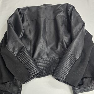 Torrid Faux Black Leather Moto Style Jacket Zip Up. Preowned. Some minor piling on back of arms and a small tear on back. See photos for details