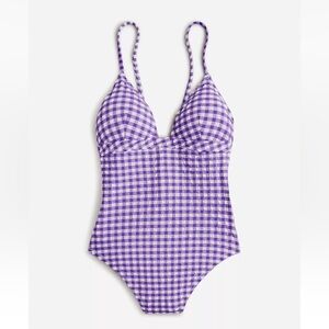 J Crew NWT Plus Plunge one-piece swimsuit in purple gingham Sz 24
