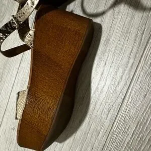 Stylish Steve Madden wedges with a striking snakeskin design. Perfect for elevating any look.