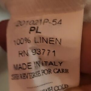 Vasna Italy Linen White Roll Sleeve Unlined Dress With Pockets Size Petite Large
