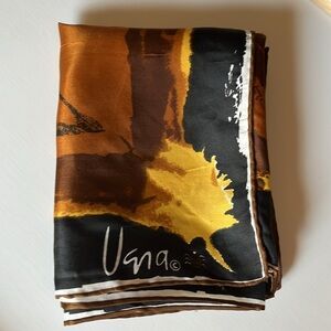 Vintage Vera Neumann Silk Blend Scarf Abstract Kaleidoscope Brown Gold Square