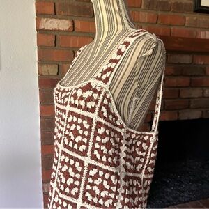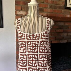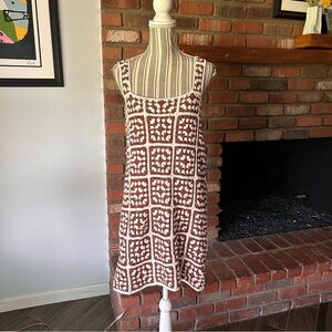 Marine Layer Celeste Crochet Cotton Mini Dress in Brown & White Sz L *flaw*
