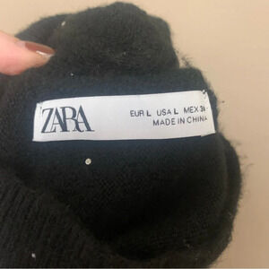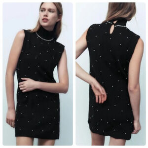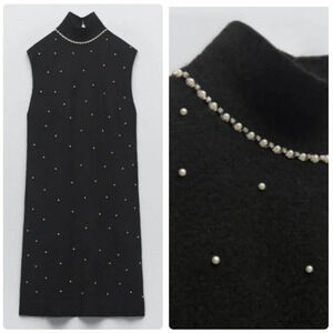 Zara Pearl Trim Knit Sweater Mini Dress Size Large Blogger's Fav