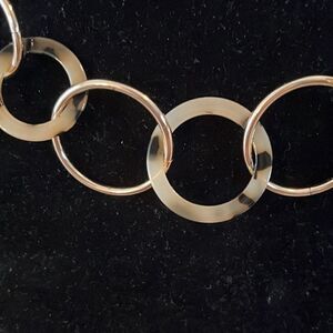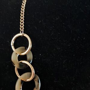 Necklace- Necklace drop Range- approx 9.5” to 10.75”. Rings vary in size from approx .75” to 1.25”.