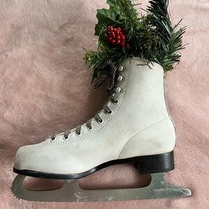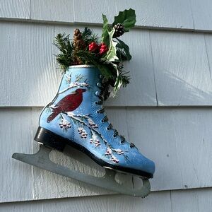 Unique hand-painted ice skate ( actual ice skate ) featuring a vibrant cardinal and snowy branches. Perfect for adding a touch of nature-inspired art to your decor.