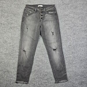 KanCan Mid Rise Ankle Skinny Jeans Women 26 Black Distressed Button Fly Mid Rise
