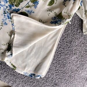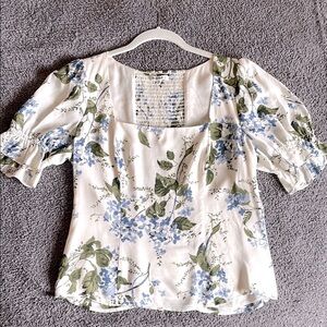 Reformation Constance Top Blue White Floral Puff Sleeve Blouse Size 12