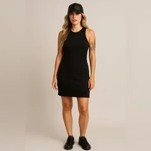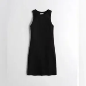 Hollister Ribbed High Neck Stretchy Knee-Length Tank Dress in Black, Large Long