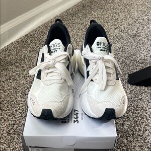 Sleek athletic Figs shoes in black and white. Ideal for everyday comfort. Worn only once, selling due to size not fitting me and out of window for return.