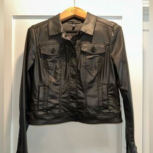 This is the jacket of the season. Luxurious coated denim looks like leather but better, it’s easier to wash. With black buttons and soft feminine details this jacket is a closet staple. The cinched waist with a subtle peplum flare is also ultra flattering.