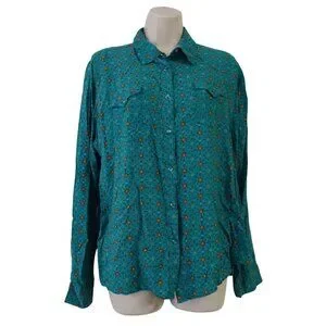 Vintage Wrangler Rancher Western Pearl Snap Shirt Women Size XXL Green Long Slv