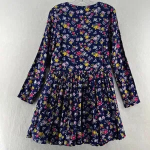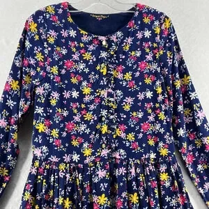 Sergent Major Dress Sz 146cm 11Y A-Line Floral Button Front Ruffled Pleated Blue