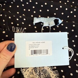 Selling this NWT Hill House Francesca dress in a size medium! Super cute midi length with polka dots and lace trip and adjustable straps. Sad to sell just missed the return window :(