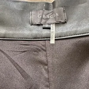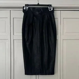Chic black pencil skirt by Gracia. Sleek and stylish leather like design that ties on the side. No zipper making this a skirt more adjustable in size. Perfect for formal or casual wear.