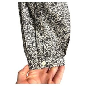 NEW black and white floral print top. Puffy long sleeves. Button detail on sleeve. Four buttons on the front. Slight gathering across the back.