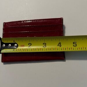 Sleek red card holder with embossed design. Perfect for organizing cards.