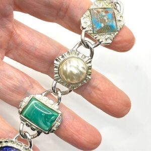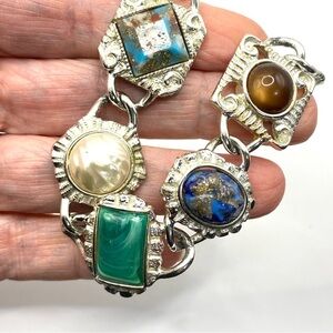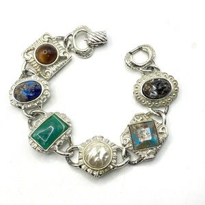 SARAH COVENTRY Faux Gemstone Cabachon Silver Tone Chunky Vintage Bracelet