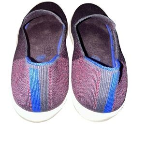 Excellent pre owned condition. Rothy’s original slip on shoe size 10. They are a maroon with navy sewn in