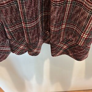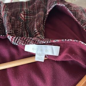 Eri and Ali dress purchased at Anthropologie. Midi dress with velvet/chenille. texture. V neck zipper down the back. Crew neck front. Pockets! Perfect with a jacket or cardigan over or with a mock turtleneck underneath. Burgundy/black/cream and gray tones. Lined until around the knee. Worn a couple of times. Perfect dress for a work holiday party. EUC
